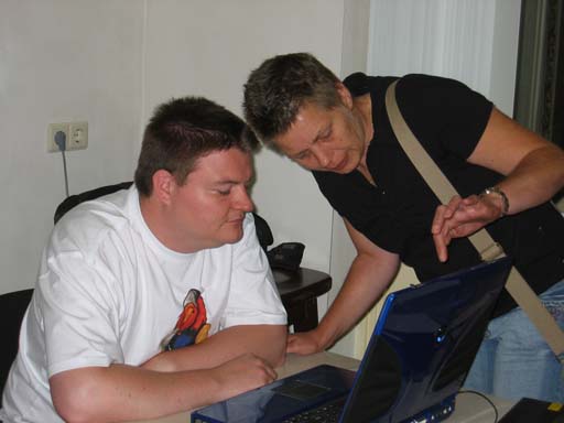 Marcel en Lammie kijken naar de standen