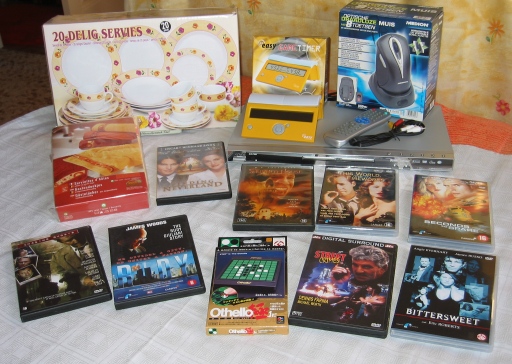 ...or various other prizes among which are a DVD player, a DGT clock and several dvd's: