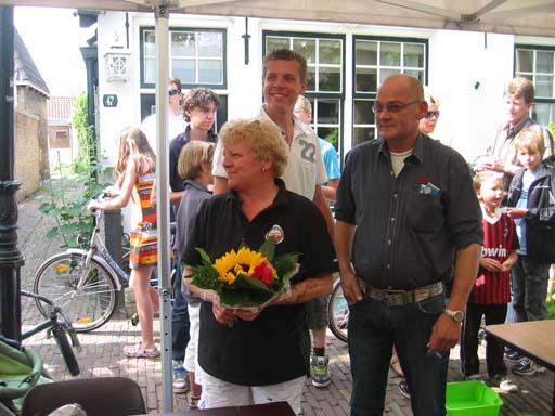 De mensen van Wapen van Langweer worden bedankt met bloemen